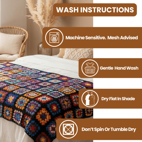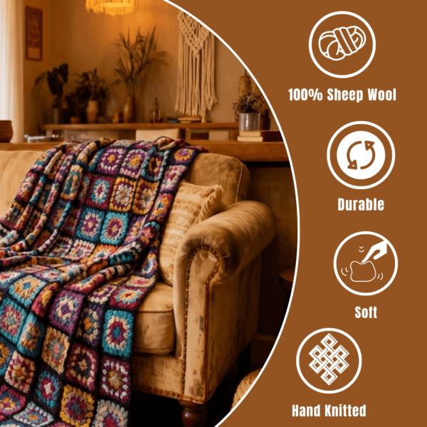 • Artisan Craftsmanship – This handmade granny square blanket is hand-knitted by Nepalese artisans from 100% pure sheep wool. Unlike a standard woolen blanket sofa cover, this high-quality sofa couch cover blanket won’t shed or lose its softness.