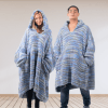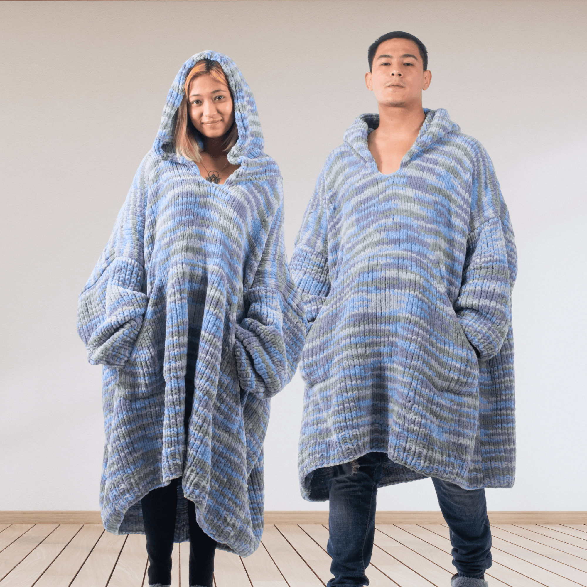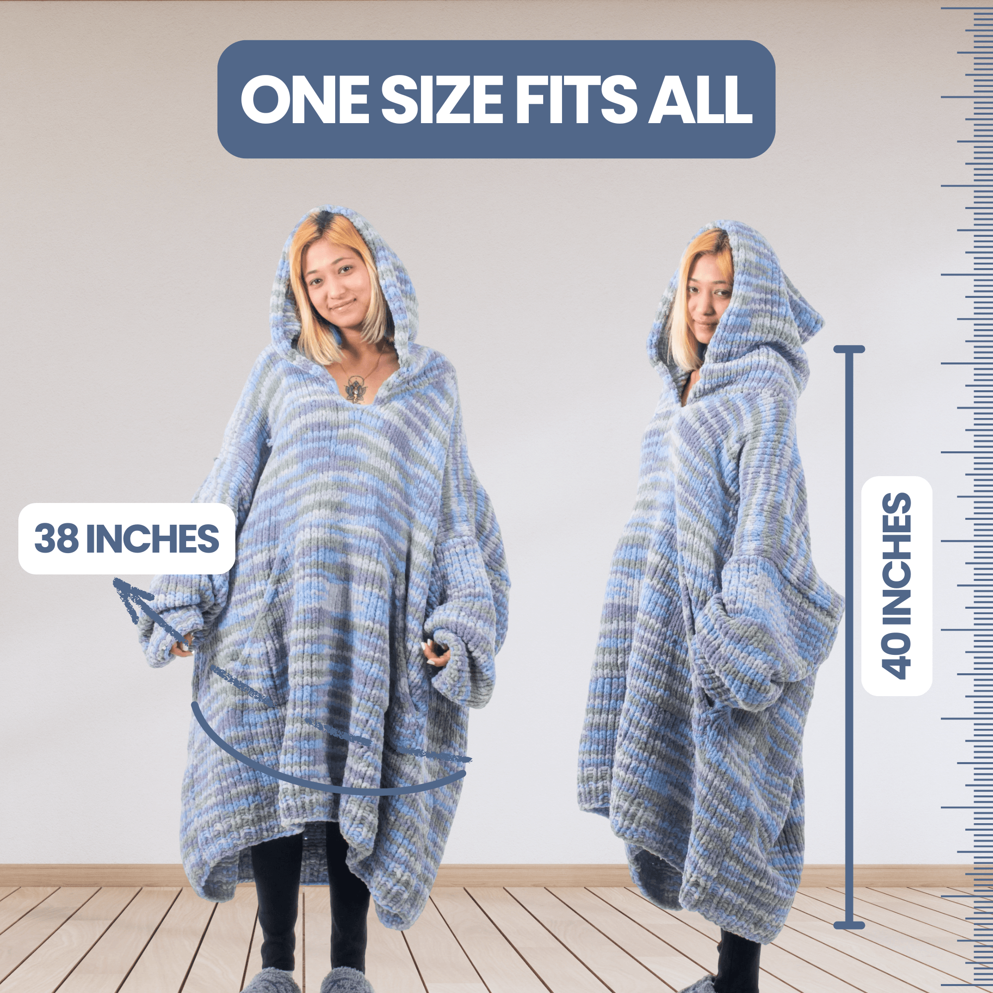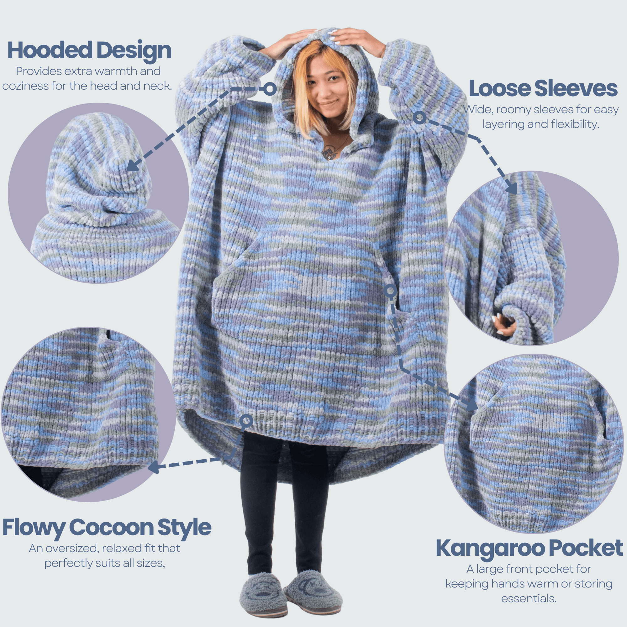 Blue Pastel Colors Hand Knitted Wearable Blanket Hoodie