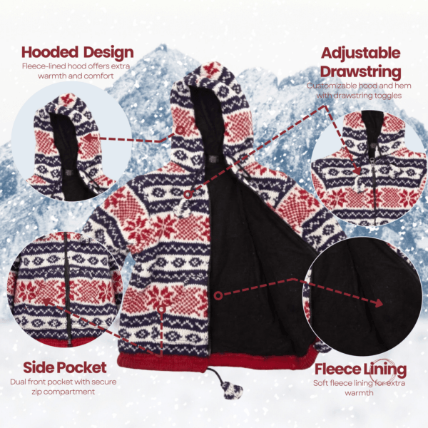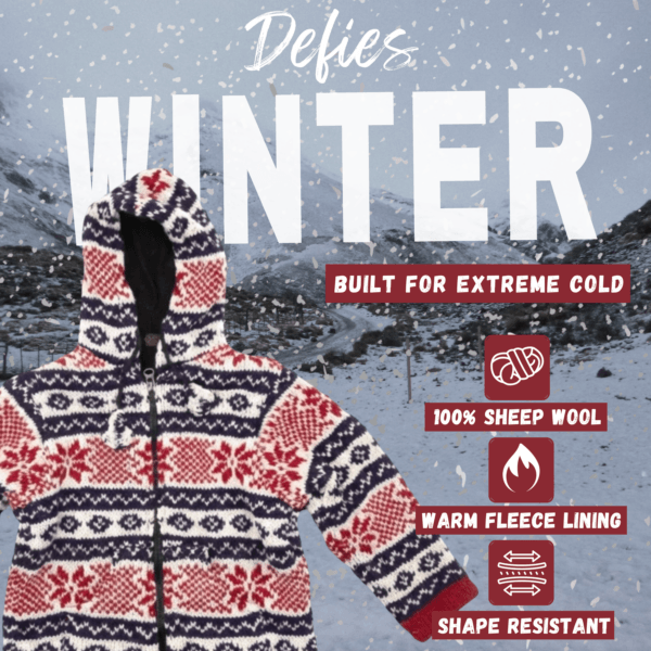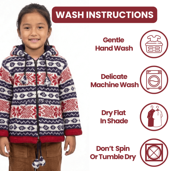 Kids Wool Jacket – Blue Red White Fleeced Lined Hooded Sweater For Toddler Girls & Boys – Made in Nepal