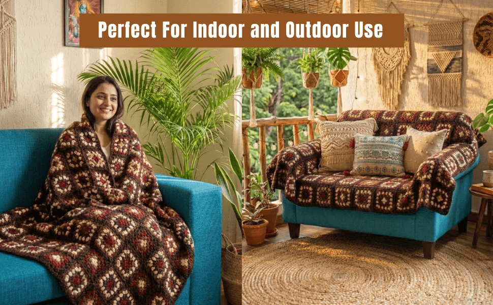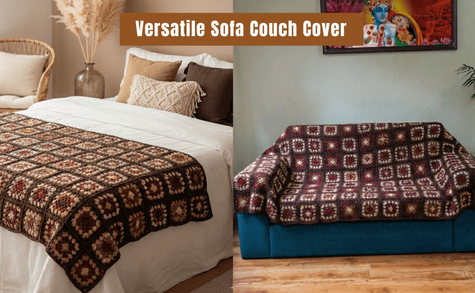 Sofa Couch Cover BlanketArtisan Craftsmanship – This handmade granny square blanket is hand-knitted by Nepalese artisans from 100% pure sheep wool. Unlike a standard woolen blanket sofa cover, this high-quality sofa couch cover blanket won’t shed or lose its softness.
