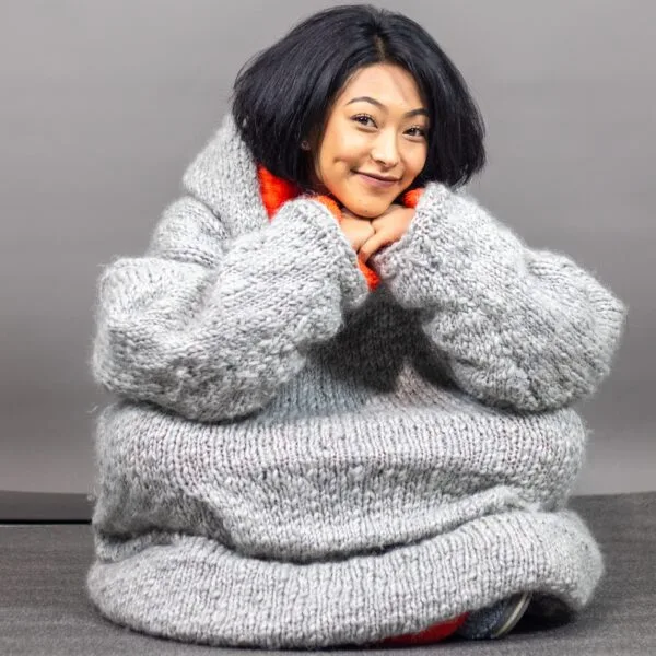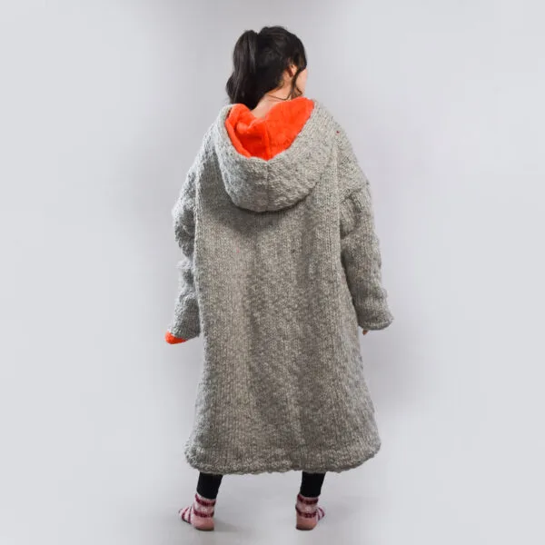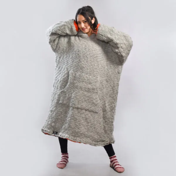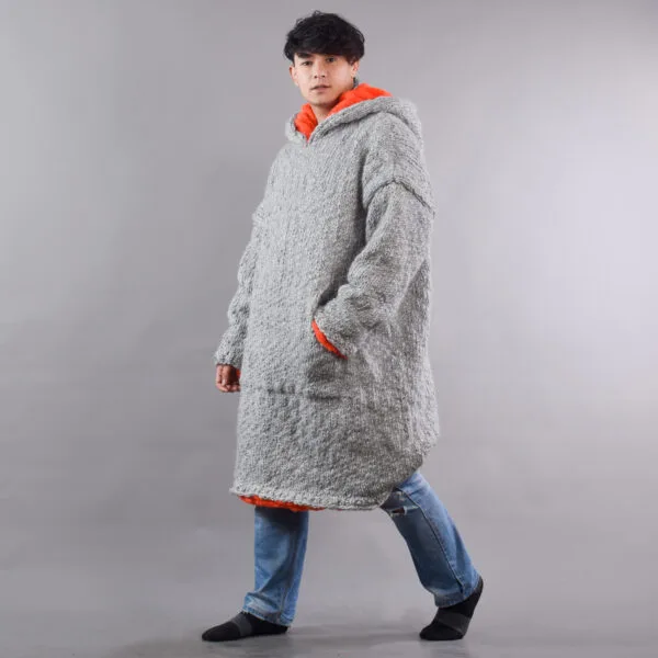Features of our Hand Knitted Grey Wearable Blanket Hoodie