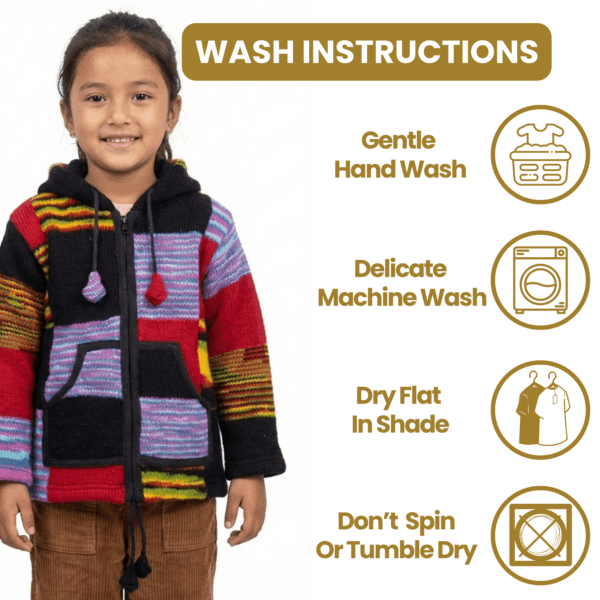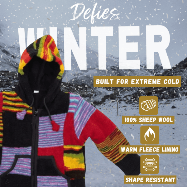Unisex Woolen Sheep Fleece Jacket – Multicolor Patchwork 100% Wool Sweater For Kids,Toddler Boys & Girls – Made In Nepal
