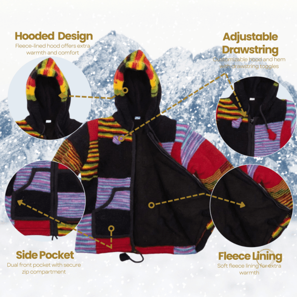 Unisex Woolen Sheep Fleece Jacket - Multicolor Patchwork 100% Wool Sweater For Kids,Toddler Boys & Girls - Made In Nepal photo review