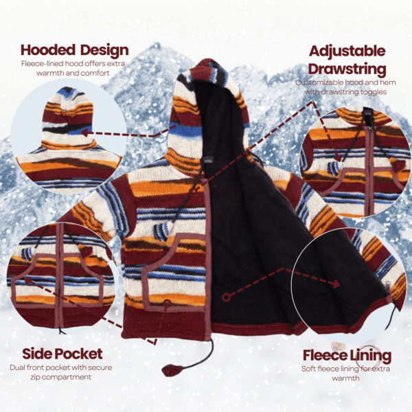 • Premium Wool Warmth – Every unisex kids wool sheep jacket is hand-knitted with care. We use 100% sheep wool for the exterior to block the cold. Inside, a soft fleece lining adds an extra layer of heat while staying breathable. This kids wool jacket fleece lined the perfect choice for freezing winter days.