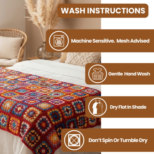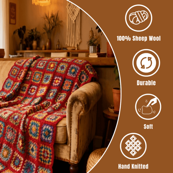 • Artisan Craftsmanship – This handmade granny square blanket is hand-knitted by Nepalese artisans from 100% pure sheep wool. Unlike a standard woolen blanket sofa cover, this high-quality sofa couch cover blanket won’t shed or lose its softness.