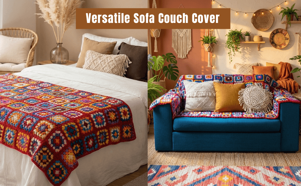 Luxury Style – Our granny square sofa cover features a hand-stitched crochet knit that elevates your bedroom or living room decor. This two sectional sofa slipcover provides a soft, safe surface for snuggling with kids and pets on the sofa or bed.