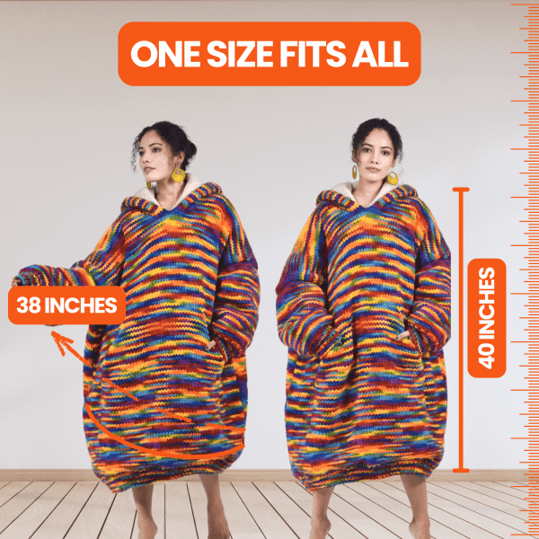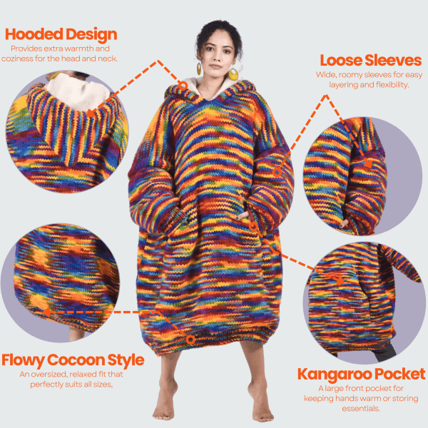 Features of our Rainbow Hand Knitted Wearable Blanket Hoodie