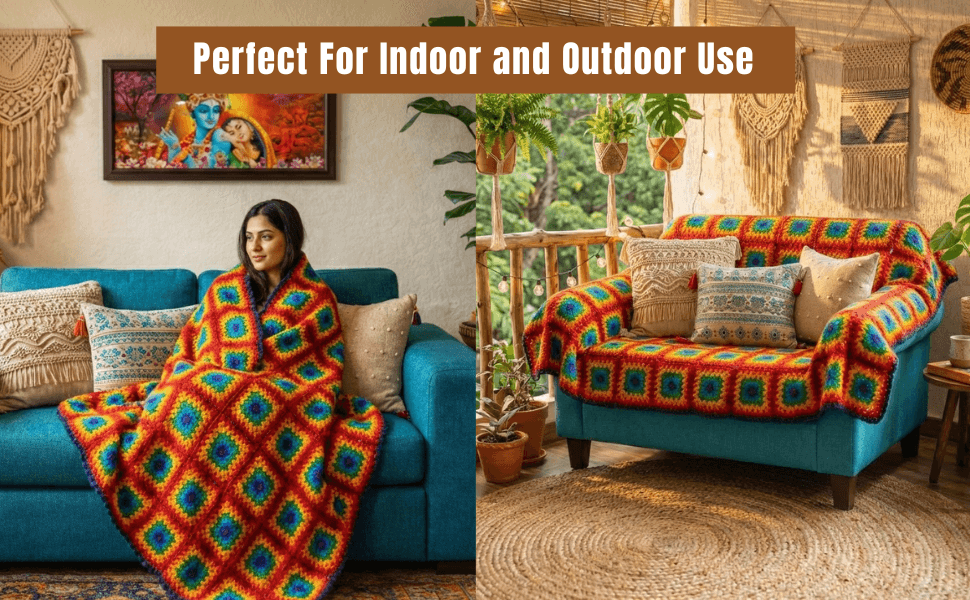 Artisan Craftsmanship – This handmade granny square blanket is hand-knitted by Nepalese artisans from 100% pure sheep wool. Unlike a standard woolen blanket sofa cover, this high-quality sofa couch cover blanket won’t shed or lose its softness.