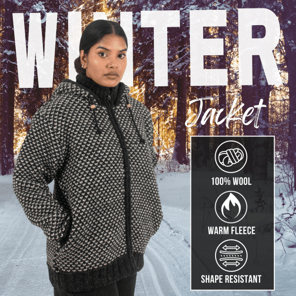 Winter Jacket For WomenFunctional Design – The wool jacket features a smooth front zipper, a stand collar, and an adjustable hood for better protection. Side pockets add convenience for everyday use, making this wool lined jacket perfect for both indoor and outdoor wear. Its comfortable fit also makes it a great choice for travel and daily activities.