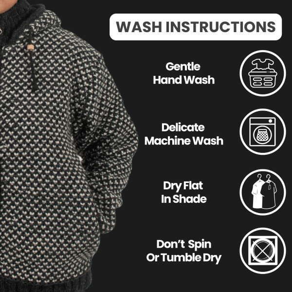 Washing Guidelines – Hand-wash gently or use a delicate machine cycle with cold water. Dry this wool jacket for women or men flat in the shade. Avoid tumble drying to maintain its overall shape.
