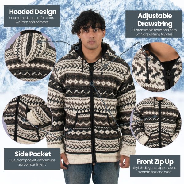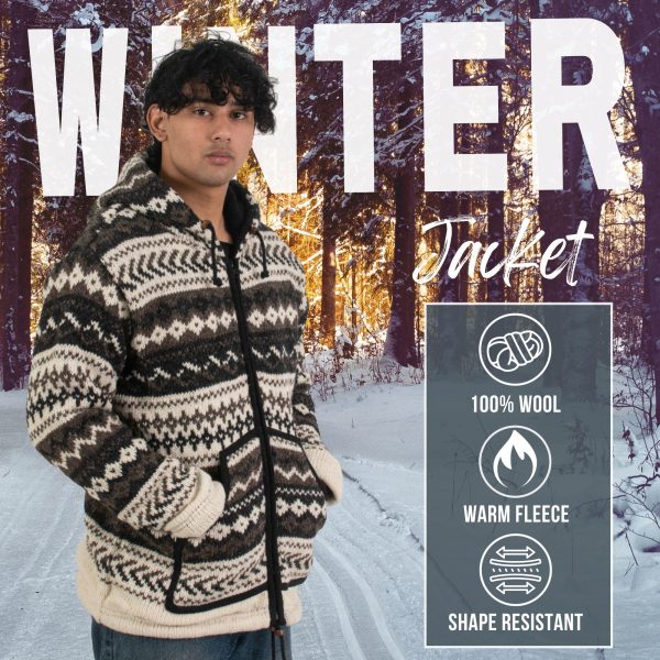 100% Wool Jacket For Women & Men – Unisex Grey Wave Fleece Lined – Handknit in Nepal