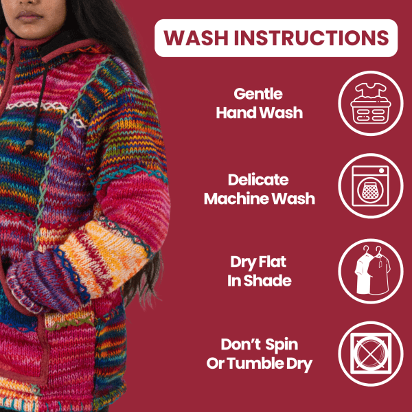 Washing Guidelines – Hand-wash gently or use a delicate machine cycle with cold water. Dry this wool jacket for women or men flat in the shade. Avoid tumble drying to maintain its overall shape.