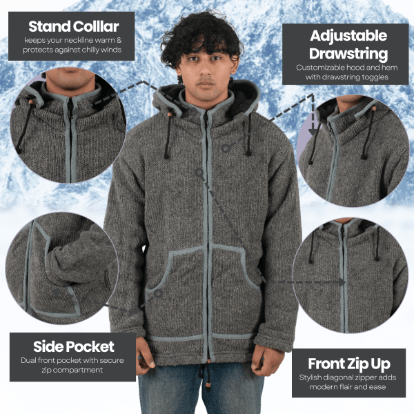 Features of Our Handknitted Grey Color Unisex Wool Jacket