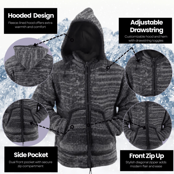 • Premium Material – This woolen jacket is handmade from 100% pure sheep wool and lined with soft fleece for extra warmth. The natural fibers make this wool fleece jacket cozy yet lightweight, providing comfort on chilly days.