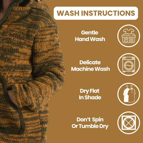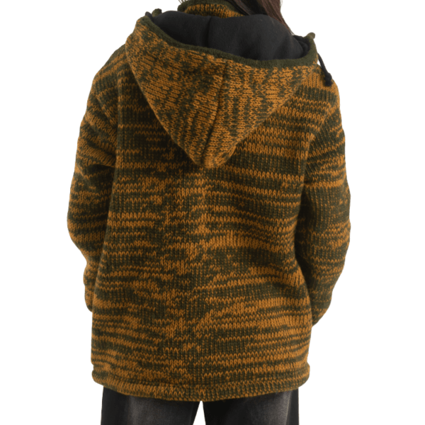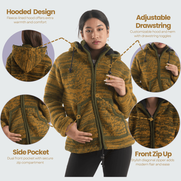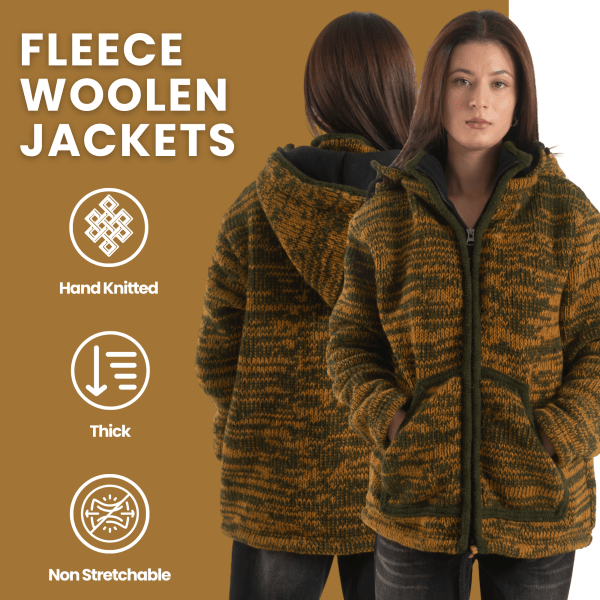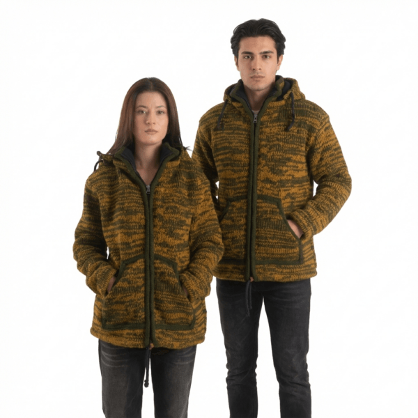 100% Wool Jacket For Women & Men – Unisex Mustard Fleece Lined – Handknit in Nepal