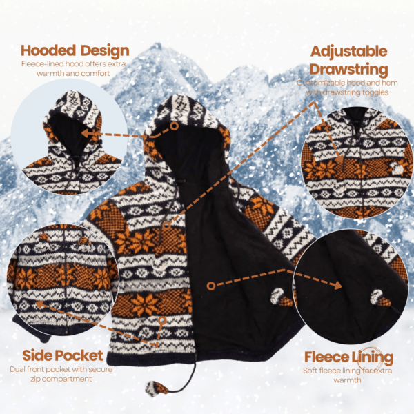 • Premium Wool Warmth – Every unisex kids wool sheep jacket is hand-knitted with care. We use 100% sheep wool for the exterior to block the cold. Inside, a soft fleece lining adds an extra layer of heat while staying breathable. This kids wool jacket fleece lined the perfect choice for freezing winter days.
