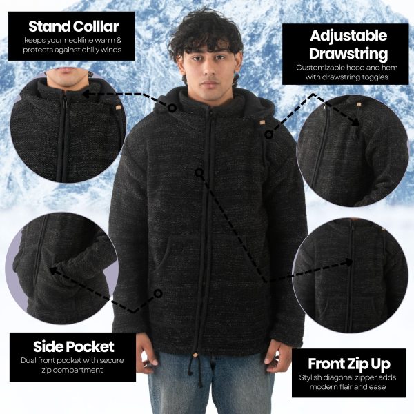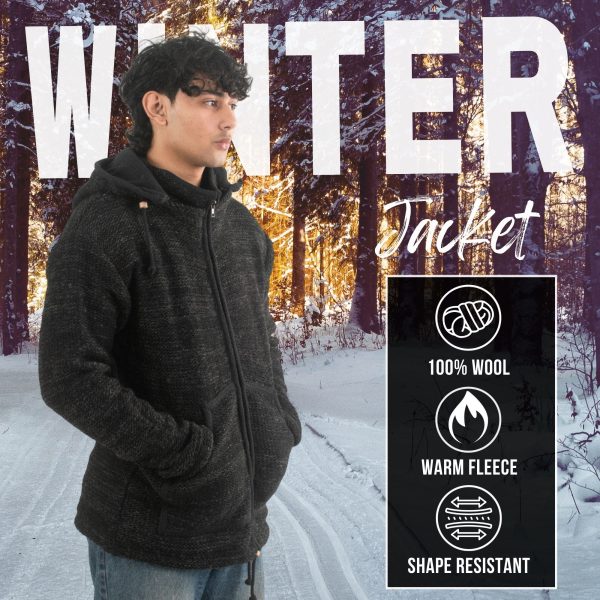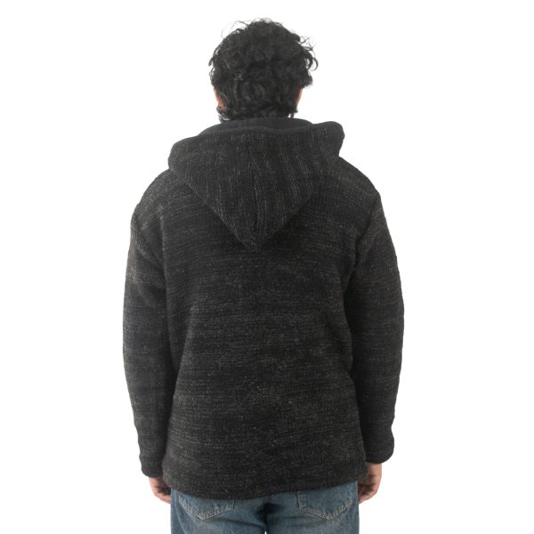 100% Wool Jacket For Women & Men – Unisex Black Fleece Lined – Handknit in Nepal