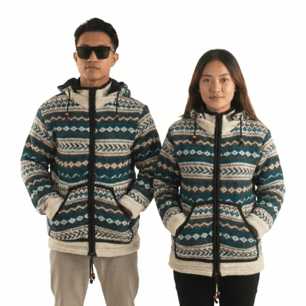Be the first to review “Wool Jacket For Women & Men – Unisex Blue Nordic Pattern Fleece Lined – Made in Nepal”