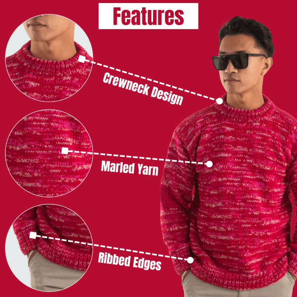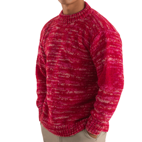100% Wool Pullover Sweater For Men & Women – Red Unisex Crewneck Design – Made in Nepal