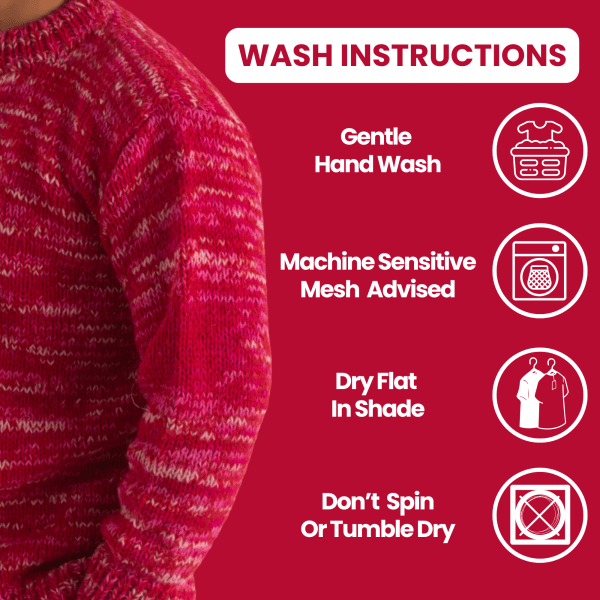 Easy Care Instructions – Hand-wash gently or use a delicate cold-water cycle. Dry flat in the shade. Avoid tumble drying to maintain the natural softness and shape of your woolen pullover.