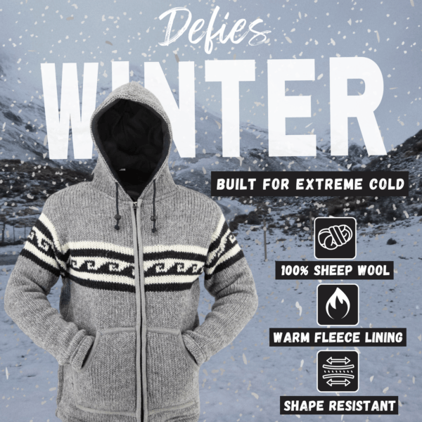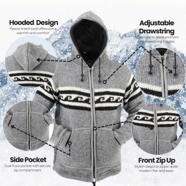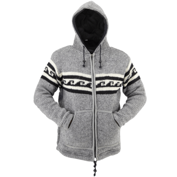 Features of our Black Grey Wave Pattern Hand-knitted Wool Unisex Jacket