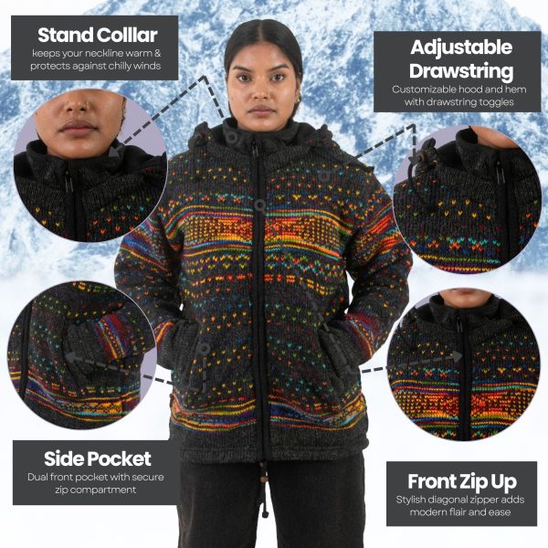 Features of Our Handknitted Black Rainbow Fair Isle Unisex Jacket