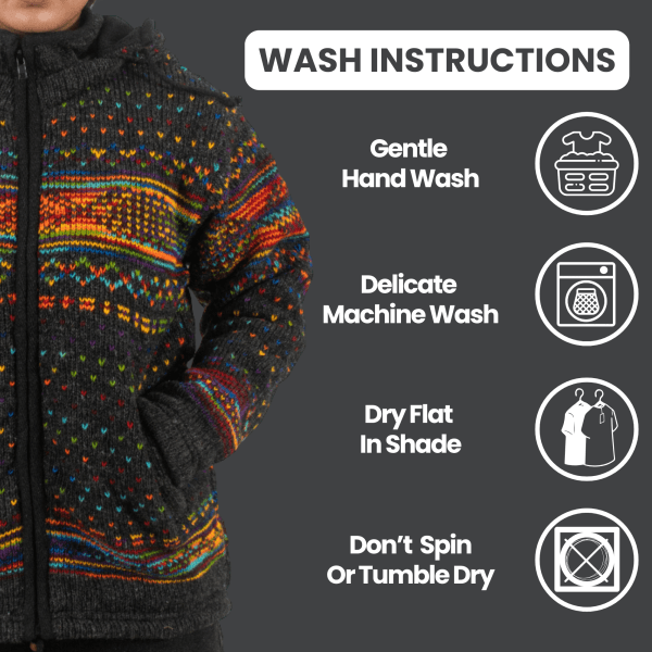 Washing Guidelines – Hand-wash gently or use a delicate machine cycle with cold water. Dry this wool jacket for women or men flat in the shade. Avoid tumble drying to maintain its overall shape.